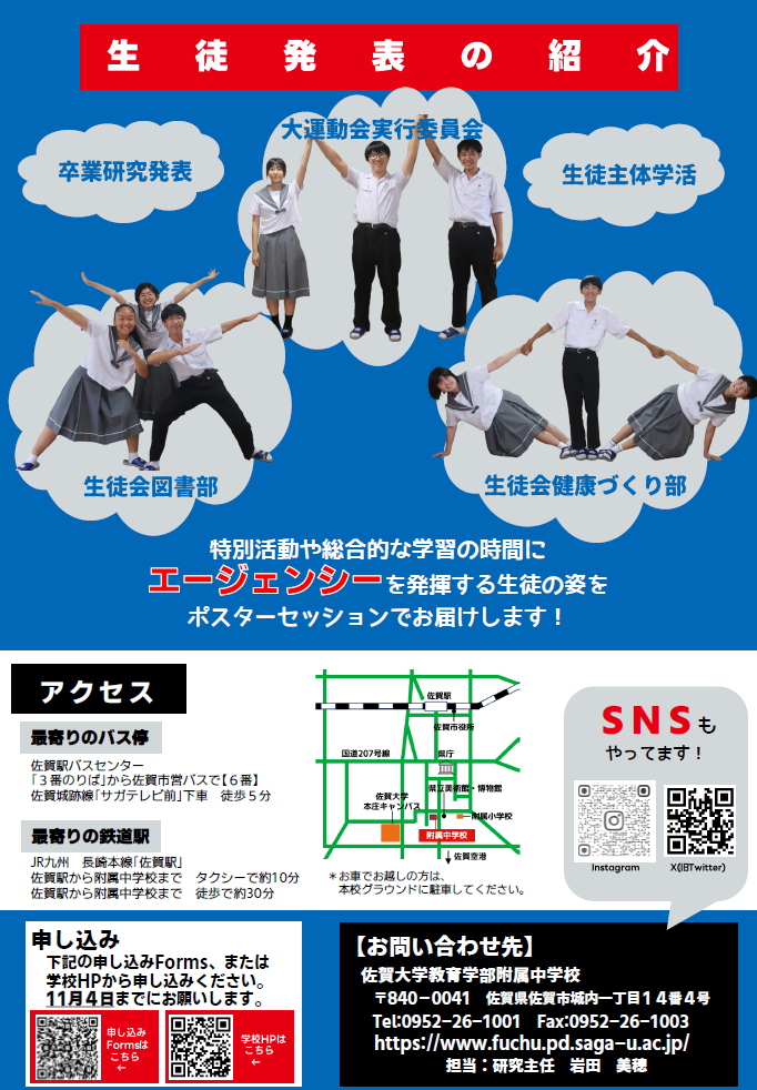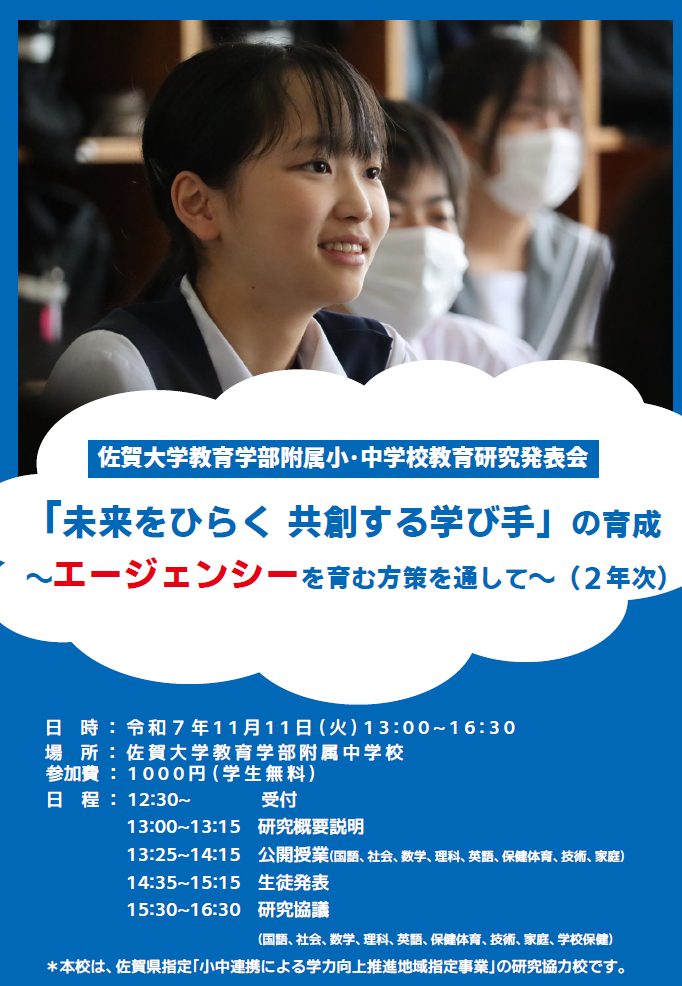 【研究発表会情報】令和7年度 佐賀大学教育学部・附属中学校教育研究発表会の開催について