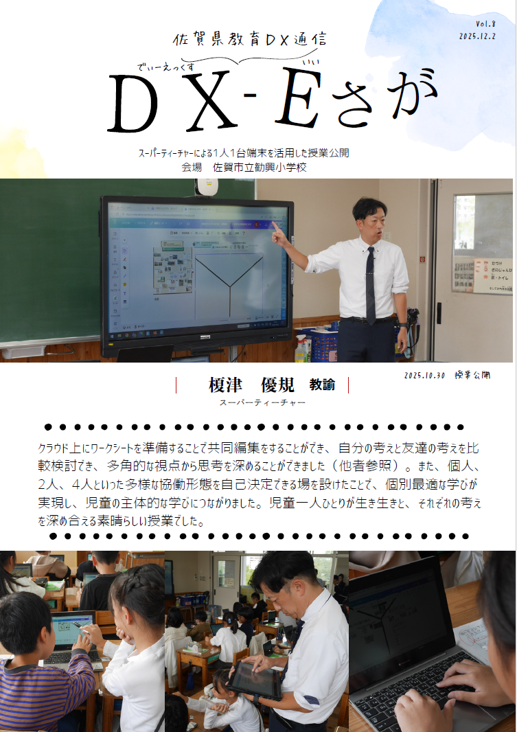 クラウド上にワークシートを準備することで共同編集をすることができ、自分の考えと友達の考えを比較検討でき、多角的な視点から思考を深めることができました(他者参照)。また、個人、2人、4人といった多様な協働形態を自己決定できる場を設けたことで、個別最適な学びが実現し、児童の主体的な学びにつながりました。児童一人ひとりが生き生きと、それぞれの考えを深め合える素晴らしい授業でした。
